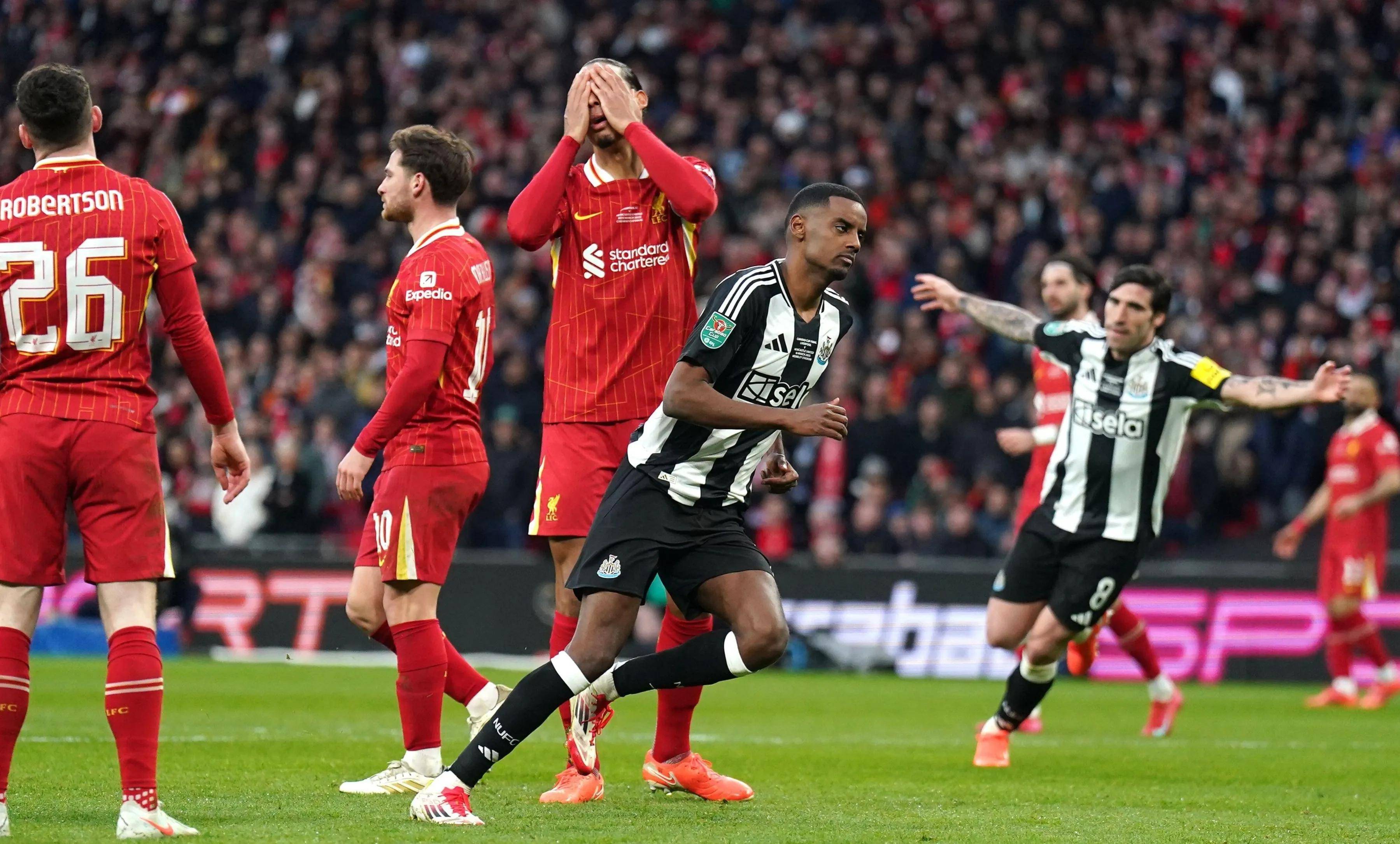这场与纽卡斯尔的联赛杯决赛,本是利物浦应该拿到的赛季第一项冠军。可到了关键时刻,利物浦又开始了掉链子的老毛病。丹-伯恩和伊萨克的进球,最终帮助纽卡2-1战胜利物浦。纽卡斯尔时隔70年后夺得参与赛事的冠军,利物浦则是继足总杯、欧冠失利之后,再次错失一项赛事冠军。